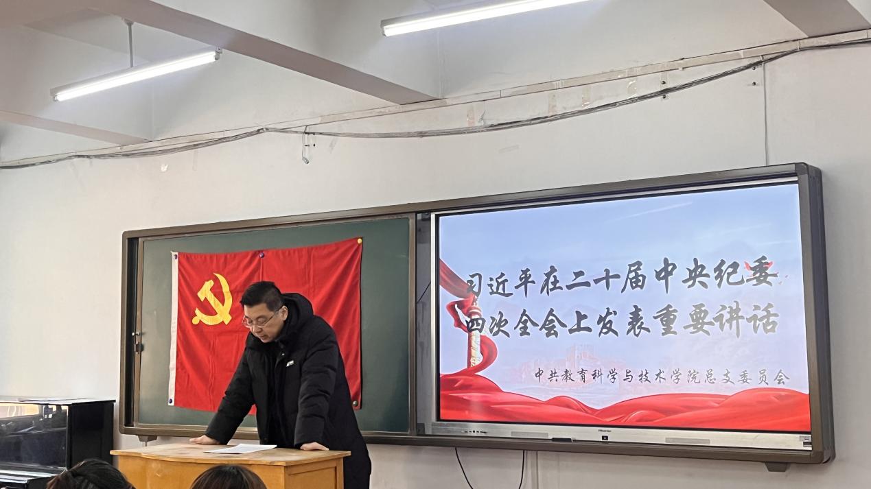 2025年1月10日,在教科院406教室,召开“习近平在二十届中央纪委四次全会上发表重要讲话”主题党日活动,活动由李刚领学。活动过程中,教师们全神贯注,认真聆听、记录,积极参与讨论交流,并认真领悟习近平在二十届中央纪委四次全会上重要讲话所蕴含的精神。