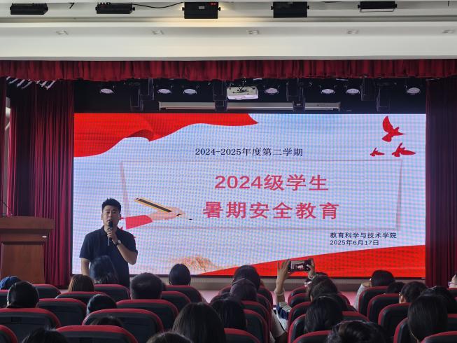 为强化学生诚信应考意识,严肃考风考纪,筑牢学生假期安全防线,6月17日和18日,教科院组织召开22、23、24级诚信考试与假期安全教育年级大会。教育科学与技术学院副院长陈亚囡、各年级辅导员出席大会。