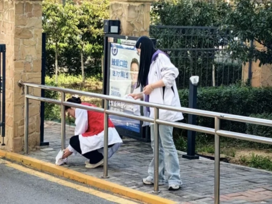 清洁家园崭新颜,志愿服务进社区。教育科学与技术学院“润德”青年志愿者于4月19日、4月25日、5月28日走进东亚第一城社区开展志愿清扫活动,进一步擦亮城市环境“底色”,提升城市文明“成色”。志愿者们身穿红马甲,手拿抹布、垃圾袋、扫帚、垃圾钳等清洁工具,深入社区垃圾存放点位及社区角落,开展拾取垃圾保护环境活动,共同建设环境优美生态宜居的美好环境。