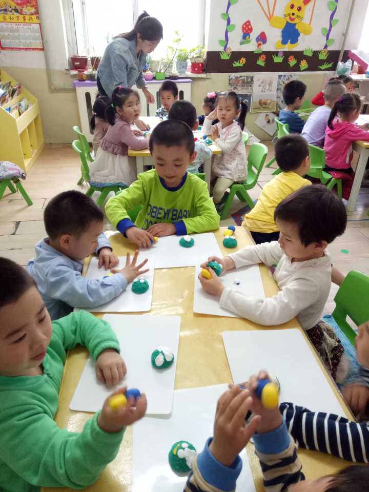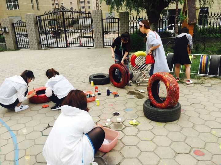 下午2时20分参与人员于B座楼下集合,负责人清点参与人员,步行到鞍钢十三幼儿园进行助教活动。活动并于3时正式开始。参与画轮胎教学人员与孩子们一起设计,在轮胎上用颜料绘画,使轮胎的外表更富有童趣。孩子们按照自己的想法自由发挥,在轮胎上大胆绘制。画轮胎活动不仅发展了孩子们的创意,也进一步提高了孩子们对绘画的兴趣。参与泥彩教学人员教给大班做的是小雪人,教给托班的是恐龙妈妈。此类助教活动不仅可以提高幼儿动手和动脑能力,也为教科青年学子提供了实际教育孩童的经验。随着母亲节的到来,孩子们准备将自己亲手做成的泥彩小动物恐龙妈妈送给母亲,一个小小的泥彩动物,代表着他们对母亲深深的爱。同时,在制作的过程中也寓意着母亲和孩子们的亲情是慢慢建立起来的。