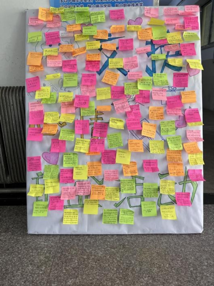 5月25日当天,同学们以匿名的形式在便利贴上书写在大学生活中所面临的心理问题,将烦恼和情绪碎片投入所设的“心情盲盒”中,再从盲盒中抽取一张他人的便利贴,在便利贴后面留下自己的解答与鼓励,最后将便利贴贴在展板上进行展示。同学们可以随时通过展板,查看其他同学给自己的留言。通过抽取“心情盲盒”,同学们与他人交换心情,传递爱和温暖,让美好与温暖相遇,一起和焦虑说“byebye”。