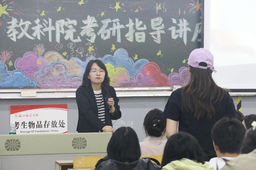 讲座过程中,姜雪老师围绕考研方向、考研院校专业选择、备考方法等同学们较为关注的问题,进行详细的讲解。姜老师提醒同学们面对当前的考研形势,需要树立正确的考研观念。在确定考研院校时,充分结合自身的实际情况,合理进行规划和选择,有针对性地复习备考。