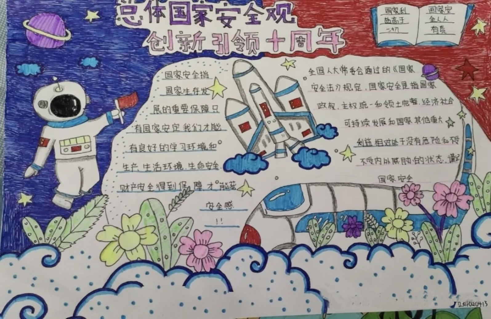 教科院团委宣传部开展“总体国家安全观,创新引领十周年”主题手抄报活动,参赛作品风格多样,内容丰富,营造浓厚的全民国家安全宣传氛围。