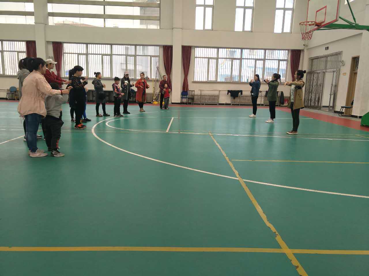 下午三点,舞蹈课准时在体育馆里进行。教科院精心挑选出来几名学生作为舞蹈教师,带领孩子们和家长们共同进行热身运动,接下来便开始了本堂舞蹈课的授课。舞蹈课是在我系师生与康复中心的负责教师共同商议后才决定开设的一门课程,我们了解到自闭症的孩子们在肢体上的发育成长尤为迟缓和僵硬。为了达到对孩子们身心多方面的援助,我们决定通过以进阶式的舞蹈课程来锻炼他们的肢体运动能力。在上课的过程中,我们也极力去克服孩子们注意力不够集中的问题,并在刻下不断反思自己的教法。