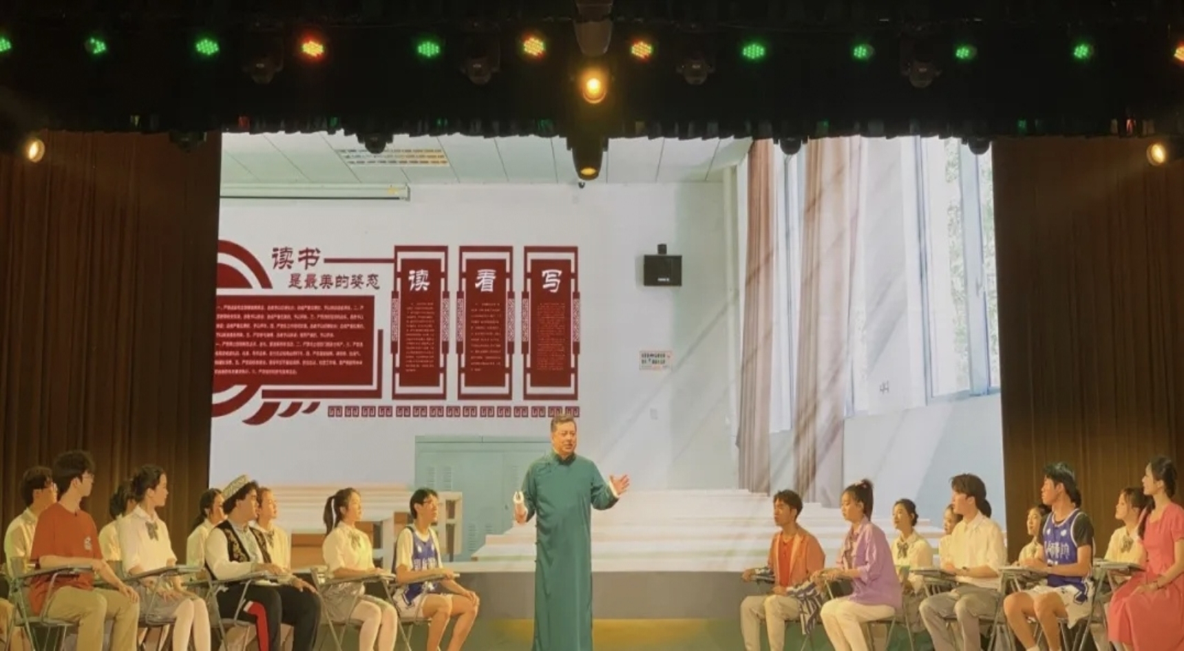 本次《一路花开》大型原创舞台思政剧,教科院师生积极参与。副书记翟晶与副院长金美琳两人共同担任副导演,并且客串剧中角色。同时,学前教育专业的孙文馨、王麓雯、杨谦赫等多名学生均有出色的表现,特别是2309班的杨谦赫同学饰演梁上这一重要角色,充分展现了角色勤奋艰苦、热爱生活的精神,彰显了当代大学生的美好品质。在其他演职人员方面,教科院二十余名学生作为舞蹈演员、剧务组工作人员参与到演出中,认真负责完成工作,显示出了教科院学子出类拔萃的专业能力。