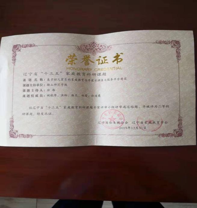 3.在2019年辽宁省“十三五”家庭教育科研课题通过结题。