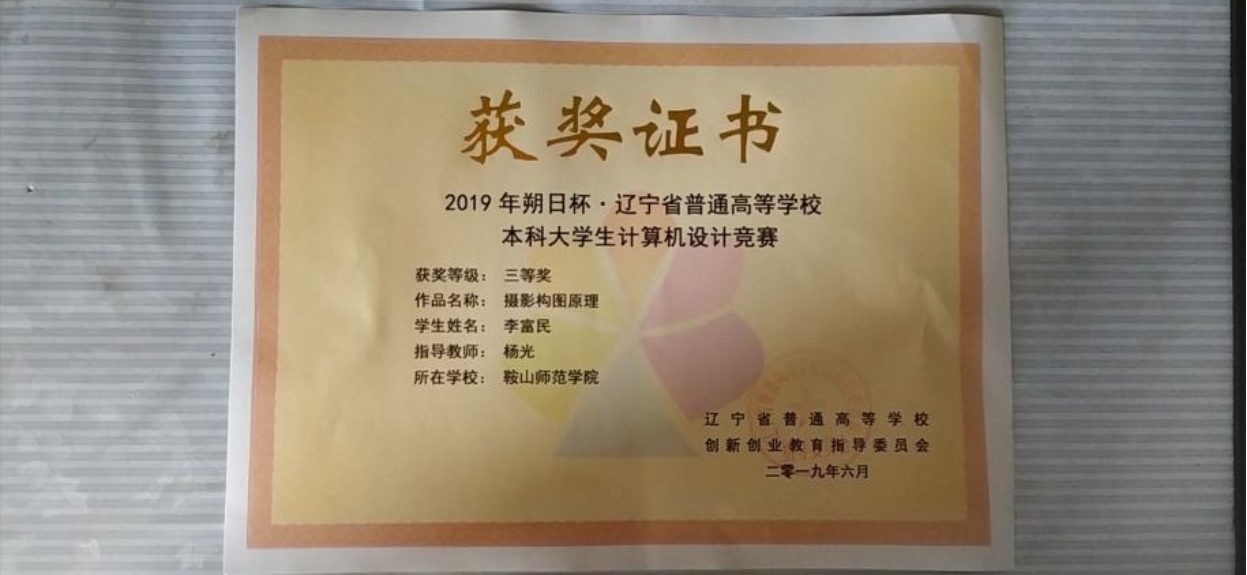 6.在2019年指导学生于朔日杯·辽宁省普通高等学校本科大学生计算机设计竞赛荣获三等奖。