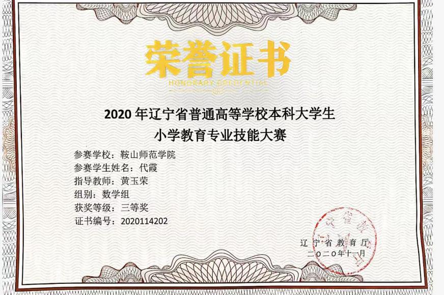 7.在2020年指导学生在辽宁省普通高等学校本科大学生小学教育专业技能大赛荣获三等奖