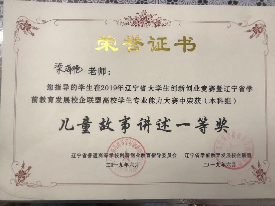 年指导学生辽宁省大学生创新创业竞赛暨辽宁省学前教育发展校企联盟高校学生专业能力大赛中荣获